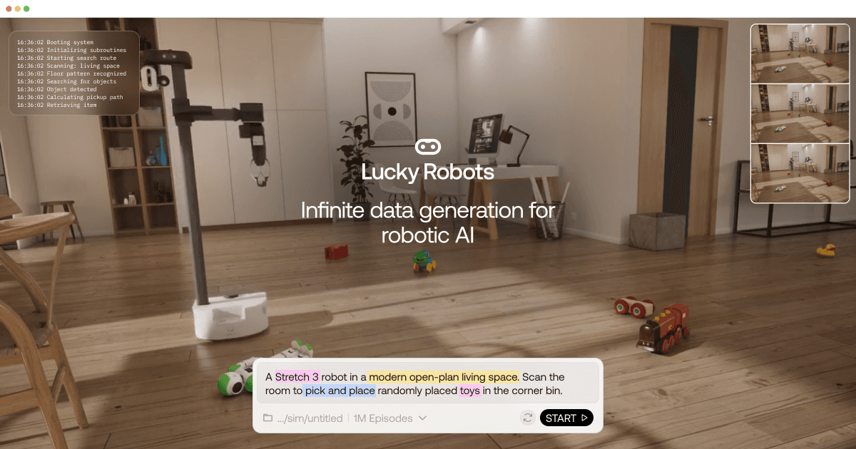 Luckyrobots offers unparalleled value by drastically reducing the cost and development time traditionally associated with robotics projects, eliminating the need for expensive physical prototypes and extensive hardware testing. It significantly accelerates the iteration cycle, enabling safer and more efficient experimentation with complex AI models in a controlled, virtual environment. This allows for faster innovation and deployment of robotic solutions.